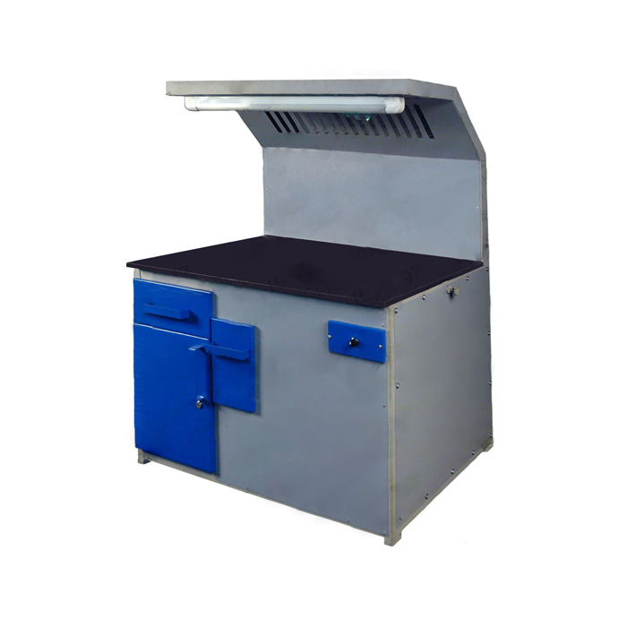 Предназначен для электросварки. Оборудован под вытяжное устройство. Окрашен порошковой краской, имеет освещение.