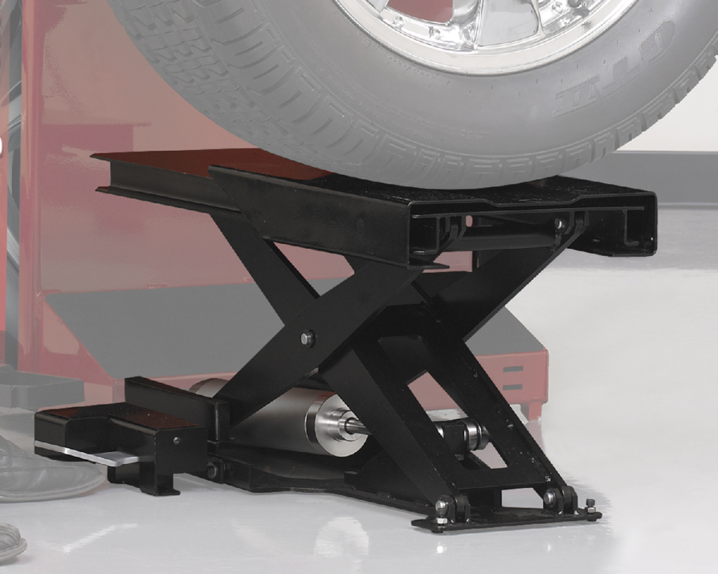 Лифт колесный. Облегчает установку тяжелых колес на вал станка. Улучшает качество центровки за счет снижения вероятности перекоса при установке.